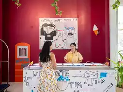 In addition to the striking colors, the service here is also very impressive. Starting with 🍨Welcome Ice-Cream, after checking in, each person will receive 1 scoop of ice cream to quench their thirst. There are many flavors to choose from. When you go to rest in the evening, there is also a 🥂 Welcome Drink, which you can receive at the rooftop bar. Sit and relax, enjoy the cool breeze, and watch the sun slowly set. It's so chill!