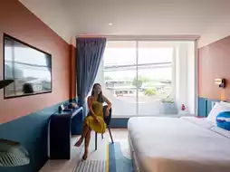 🌆This trip, we will introduce you to a new hotel that has just opened in the Phra Ram 4-Khlong Toei area with very striking decorations and colors. The interior emphasizes the use of bright colors, perfect for a relaxing day. Each room is decorated differently, both in terms of color tones and furniture in the room. You can say that no matter how many times you stay here, you will get a unique atmosphere.