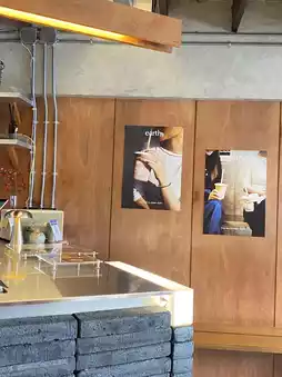 A healthy smoothie bar in the Khlong Toei area. The small shop has seating for 5-10 people. The atmosphere is pleasant, decorated in wood tones and lush greenery, creating a refreshing and pleasing atmosphere.