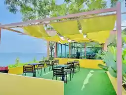 🏡 Located within the Golden Cliff Beach Resort on the Trat-Khlong Yai road 🌿 The back of the cafe offers views of the Banthat mountain range, while the front faces the sea 🌊. There's even a staircase leading down to the beach for a leisurely stroll.