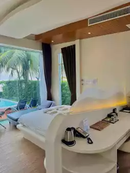 De Veranio is another accommodation that makes beach time even more meaningful. Every corner is meticulously designed, creating a simple yet luxurious atmosphere. Surrounded by nature and the soothing sound of waves, the rooms are spacious and airy, with complete amenities. Enjoy a beachfront pool, a restaurant serving delicious dishes, and friendly service that makes you feel like you're relaxing in your own vacation home. Waking up to a panoramic sea view in the morning truly makes your time here extra special. 💙