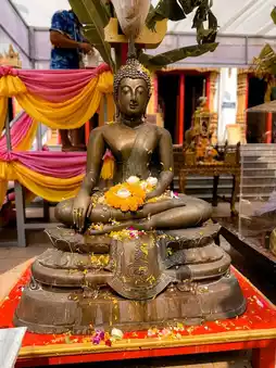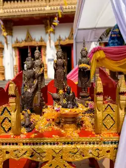 Pouring water on Phra Phuttha Maha Chak Kaen Nakhon (Luang Pho Wat Nuea), the principal Buddha image of Wat Nong Waeng, the Buddha image that helped inspire Wat Nong Waeng from being a temple of the people to being a royal temple (royal temple), the sand pagoda activity, sand plowing, and sand carrying to the temple to raise funds to restore and paint the Phra Mahathat, etc., the activity of hanging silver and gold Bodhi trees, supporting Bodhi trees to enhance the auspiciousness of love, stability, and wealth, making merit by saving the lives of cows and buffaloes, and enhancing the merit and virtue of life.