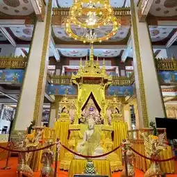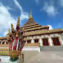 Phra Mahathat Kaen Nakhon has 9 floors in total, each floor is beautiful and interesting in its own way. The top floor is where the Buddha's relics are enshrined. For example, the first floor is interesting because it is a meeting hall with 4 principal Buddha images. The surrounding area is decorated with various patterns, including pillars, doors, and windows, as well as carvings depicting the story of the four Champaka trees, especially the large door panels, which are carved in 3D.