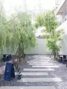 🫐 Trinity Cafe, a super cool cafe, seems to have a new branch now. This is the original shop on Na Muang Road. It's housed in two spacious shophouses, offering both indoor and outdoor seating at the back. The menu offers a wide variety of delicious breads, especially the croissants, which are incredibly delicious. The drinks, which include a variety of coffee beans and other non-coffee drinks, are all delicious. The atmosphere is great, spacious, and perfect for taking cool photos. There's a garden at the back.