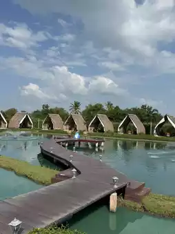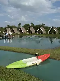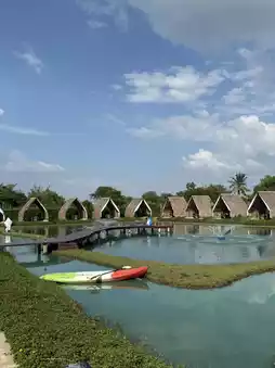 🛖 There are numerous waterfront pavilions to sit in, as well as air-conditioned rooms and a karaoke party room, which requires advance booking.