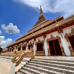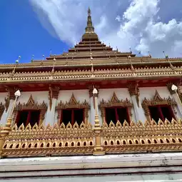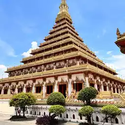 🚩 Wat Nong Waeng is located on the city center road, along Bueng Kaen Nakhon in Mueang District. Here, the 'Phra Mahathat Kaen Nakhon' or what Khon Kaen locals call the '9-tiered Phra That' is enshrined. It is golden and beautiful.