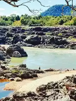 Each arm contains rapids and waterfalls a few kilometers from the Cambodian border, making sailing between the two countries impossible.