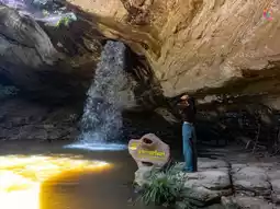 Especially on the Monday At midnight, the moonlight shines down through the hole in the rock, along with the mist from the waterfall that sparkles beautifully in a soft color.