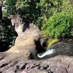 Saeng Chan Waterfall (Namtok Long Ru) is another tourist attraction in Pha Taem National Park that tourists are interested in visiting because it is called “Unseen Thailand”. Saeng Chan Waterfall or another name is Namtok Long Ru, originating from Huai Tha Long. The origin of the name Saeng Chan Waterfall is named after the waterfall that sprinkles mist through the rocks, which is a soft white color similar to moonlight. Especially at midnight, the moonlight will shine into the rock holes and the waterfall will sprinkle beautifully. The rock holes are caused by water erosion. Because sandstone is not very resistant to erosion, it is a natural phenomenon that is perfect for sandstone and water. #tripแจกโรงแรมฟรี #น้ำสะเก่น
