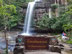 This large waterfall, 30 meters high, is formed by the convergence of the Huai Soi and Sae Pai streams, creating a necklace-like shape before flowing into the Mekong River, hence the name "Sai Sawan Waterfall." The best time to visit Sai Sawan Waterfall is during the rainy season to winter.
