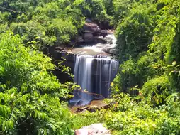 It is a waterfall originating from the Namuang Noi stream. It is a medium-sized waterfall that flows along the canyon before falling down into small levels. When it reaches the 90-degree cliff, it falls down to the bottom before flowing into the Mekong River. Namtok Thung Namuang is surrounded by forest.