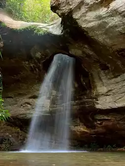 ☄️ Saengchan Waterfall or Namtok Long Ru with the characteristics of the waterfall flowing down from a large hole on top caused by the erosion of water and gravel during rain until the hole expands until it becomes a rock cavity.