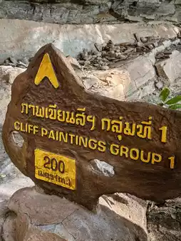 Ancient paintings about 3,000–4,000 years old on a cliff over 180 meters long, showing the way of life of prehistoric humans, such as hunting, fishing, and mysterious symbols.