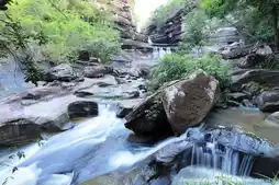 From the Pha Taem National Park office, drive on Highway 2112 and turn right towards Ban Na Pho Klang. Continue for approximately 12 kilometers. There will be a fork on the right towards Ban Nong Phue. Follow the signs for Soi Sawan Waterfall for approximately 3 kilometers. Near the waterfall, park there and walk for approximately 500 meters via a nature trail and stairs to reach Soi Sawan Waterfall.