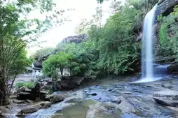 Soi Sawan Waterfall, located in Pha Taem National Park in Ubon Ratchathani Province, is a large waterfall, 30 meters high. It is formed by the convergence of Huai Soi and Lam Sae Pai streams, which form a necklace-like shape before flowing into the Mekong River, hence the name Soi Sawan Waterfall.