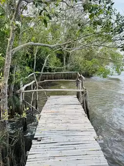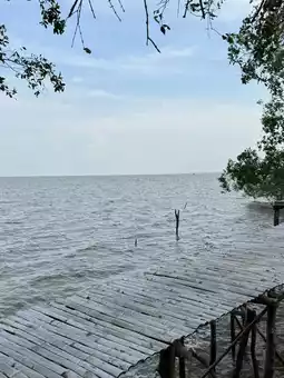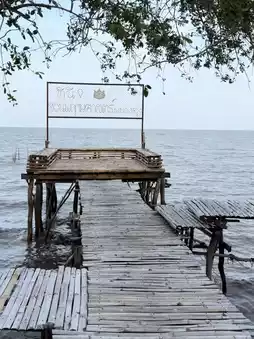 Phatthalung Botanical Garden Walk on the wooden bridge that stretches into the middle of the mangrove forest. It feels like walking in a tree tunnel. The atmosphere is shady, quiet, and you can hear the birds singing