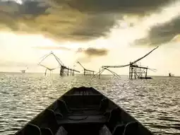 Ban Pak Pra, Phatthalung Province, is one of the most beautiful sunrise viewing spots in the South. The morning light reflects off Songkhla Lake amidst rows of giant Yarrow fields, creating a warm and peaceful atmosphere. 💛 On this trip, we stayed at Chan Mai Chai Le, a resort located at the mouth of Pak Pra Canal, where you can watch the sunrise from the front of the house.