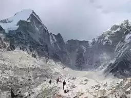 We have finally reached EBC, Everest Base Camp, the most iconic point among Nepal's many trekking routes, located at the foot of the world's highest peak. Although it's a pity that we can't see Mount Everest from this spot, being surrounded by majestic mountains still fills me with awe. This place is truly beautiful.