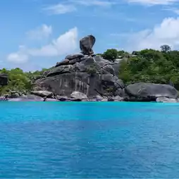 Similan Island is located in the middle of the Andaman Sea. It takes about 1.5 hours by boat from the shore. The sea around Similan Island is very clear and has white sandy beaches that are as fine as flour because the sand is formed from the breakdown of coral. As soon as we arrive by boat, we are greeted by the beauty of Similan Island.