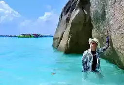 When you arrive at the pier, register to receive wristbands that are separated by the color of each boat. After breakfast, board the speedboat. It takes about 1.5 hours to travel to our first destination, Koh Paet. This island has a symbol that tells you that we've arrived in Similan, which is the Sailboat Rock. Wow, from the first step onto the island, the white sand and blue sea are truly blue. Don't miss going up to the viewpoint on top of Hin Ruea. It's not far, no more than 10 minutes. The view is amazing, I guarantee it.
