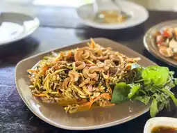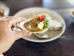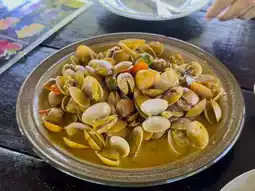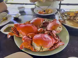 The menu at the restaurant is seafood that uses local ingredients, such as Khao Klang seaweed that is used to make a spicy salad. It is very delicious. Or Hoi Khyam, which is similar to clams but smaller. Nuch ordered it stir-fried with chili paste. This dish is rich. There is also steamed black crab with sweet and delicious meat.