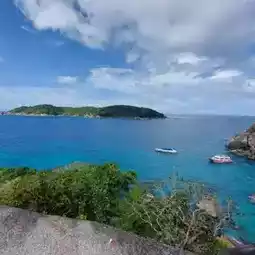 Similan Island, the sea is very beautiful, the white sandy beach is very beautiful, there are young hermit crabs coming out to show off and walk around, very pleasing to the eyes. The nature here is very good, the sea water is clear, I must say that this island is truly beautiful, anyone who comes to visit will be impressed. The viewpoint that you have to walk up the hill to is very beautiful, sitting and watching the view is very pleasing to the eyes, looking anywhere, the sea is very beautiful. 📷❤