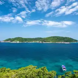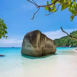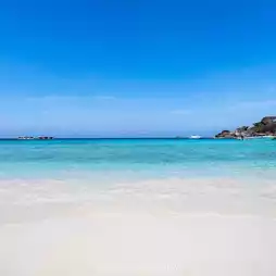 - Island number 8 or Similan Island, which is symbolized by the sailboat rock. The highlight of Similan Island is Horseshoe Bay, which has a beautiful beach with white sand that is as fine as flour, which is caused by the decomposition of coral. The sand is very soft and fine, and the sea water is clear and turquoise, making it a popular place for both Thai and foreign tourists to relax on the beach or swim. In addition, Koh Paet or Similan Island also has a viewpoint of the sailboat rock, where you can walk up to see the magnificent view from above. By walking along the path for about 15-20 minutes, you will see a clear view of the horseshoe-shaped beach.