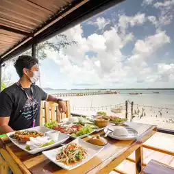 Today, let's try a newly opened restaurant that serves seafood and various drinks at Tung La-ong Pier. City Bar is a loft-style restaurant with two floors. We recommend the second floor where you can see the sea and Koh Phra Thong.