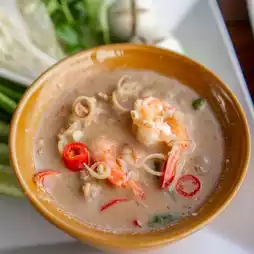 - Shrimp curry, with the richness of coconut milk, 100 baht