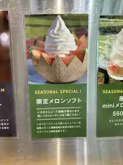 The melon soft serve, available for only 2-3 weeks, varies in price depending on its size 🍈. Topped with premium soft serve on juicy melon, it's a luxurious treat you must try at least once in your life ✨