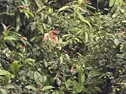 A sneaky proboscis monkey photobombed my epic jungle selfie. His nose was so big, I swear it had its own zip code. 📸🐒