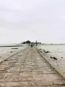 You need to calculate the time of high tide. The total length is about 15 minutes and the round trip takes 30 minutes. You need to leave enough time to walk back. Otherwise, you have to wait until the tide goes out before you can walk back. It will take a long time.