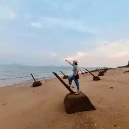 A row of defensive piles stretches out like a column toward the sea. Walking here not only allows you to enjoy the sea breeze, but also allows you to take beautiful photos brimming with battlefield charm. ✨