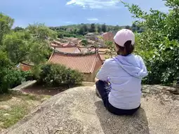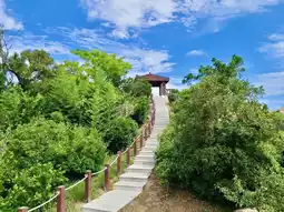 Climbing up to Zhushan Park for a panoramic view🌲, one can see the interwoven tapestry of red-tiled roofs and green foliage that forms a picturesque scene.