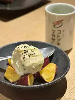 Hot, fluffy sweet potato with plenty of honey and cool ice cream for a delicious dessert💗