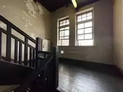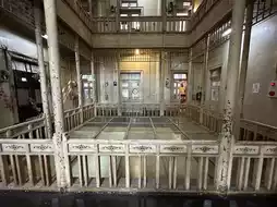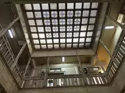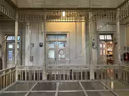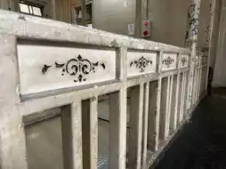 there was stained glass on the lattice ceiling and decorative handrails.
