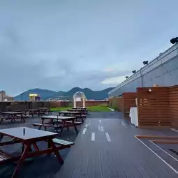 👉There is a place to sit and relax at the back of the hotel. It is an open space and there is a table for eating.