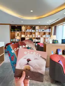 Check-out is at 12:00, so I read a book at the Tower Library 🐱📚