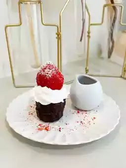My daughter's wax canelé set was a strawberry-flavored fresh canelé topped with fresh cream and strawberries, and then topped with your choice of chocolate sauce. ♡
