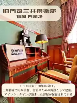 Old Moji Mitsui Club is located right in front of the retro Mojiko Station. The 1st floor is a retro cafe, and the 2nd floor is a memorial room that recreates the hotel where Einstein and his wife stayed, and the Hayashi Fumiko Memorial Room. If you want to see the three luxurious rooms, it's 150 yen, but it's worth it!