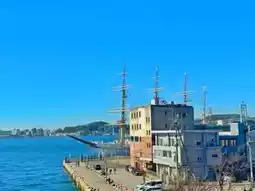 From the window you can see Japan's most famous sailing ship, the Kaiwo Maru.