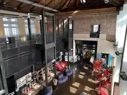 The view from the window of the lounge on the second floor also has a retro feel to it, with the surrounding buildings.