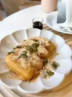It was topped with soybean flour and finished with brown sugar syrup🥰