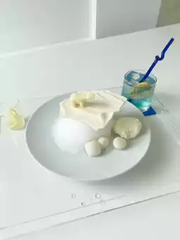 A refreshing drizzle of lemon syrup completes the shaved ice.