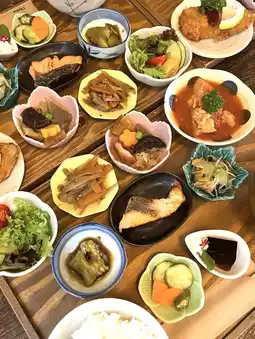 Lots of small dishes such as salads, simmered dishes, and vinegared dishes