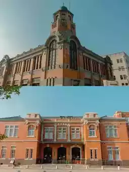 The Old Osaka Shosen Building, built in 1917, was once the Moji branch of the shipping company Osaka Shosen, and was later restored. Its magnificent octagonal tower and tiled facade make it one of Moji's landmarks. The first floor is now a communication space, showcasing the works of local artists and craftsmen.