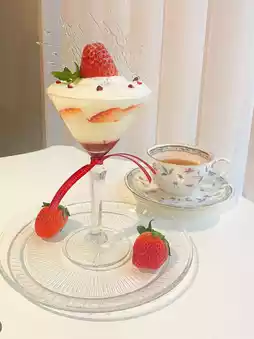 The drowning strawberry parfait has a 5-minute expiration date, because if it's left for longer than that, it will melt and lose its balance 🤭
