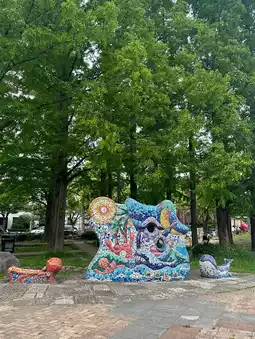 There are various animal sculptures and a sandbox, so it's recommended to go with your kids✨