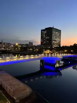 A restaurant where you can dine while looking at the Murasaki River and Kokura Castle