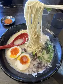 The rich ramen has a punch and is recommended with a strong tonkotsu flavor!